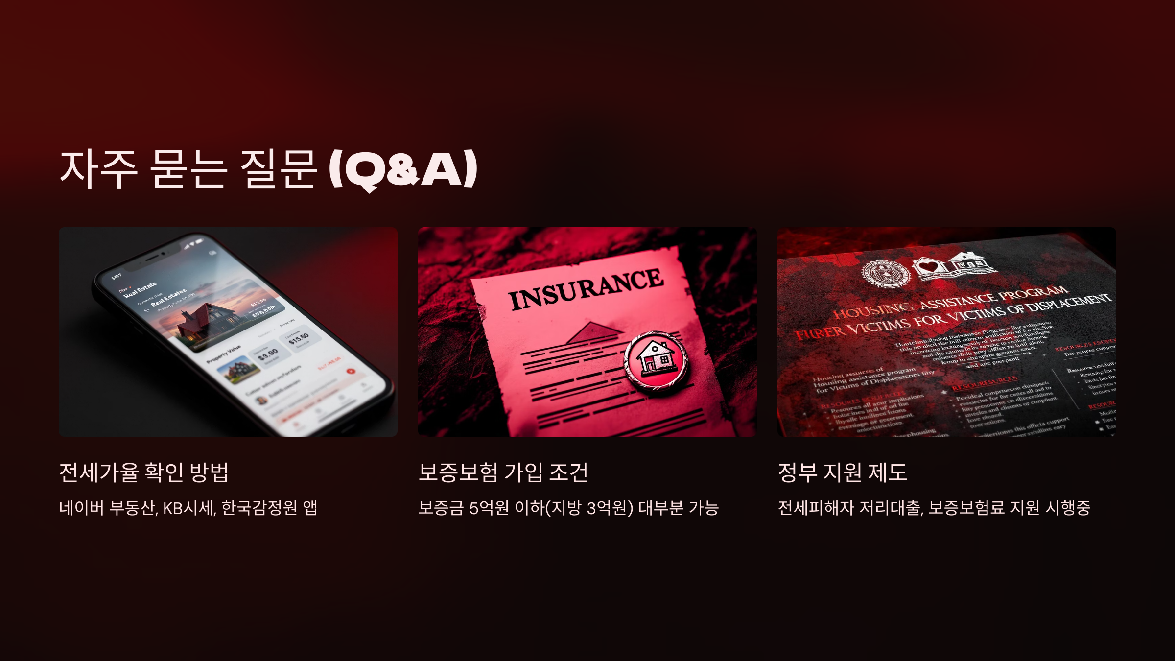 A. 네이버 부동산, KB시세, 한국감정원 앱에서 확인 가능합니다. - Q. 전세보증금 반환보증은 누구나 가입할 수 있나요?