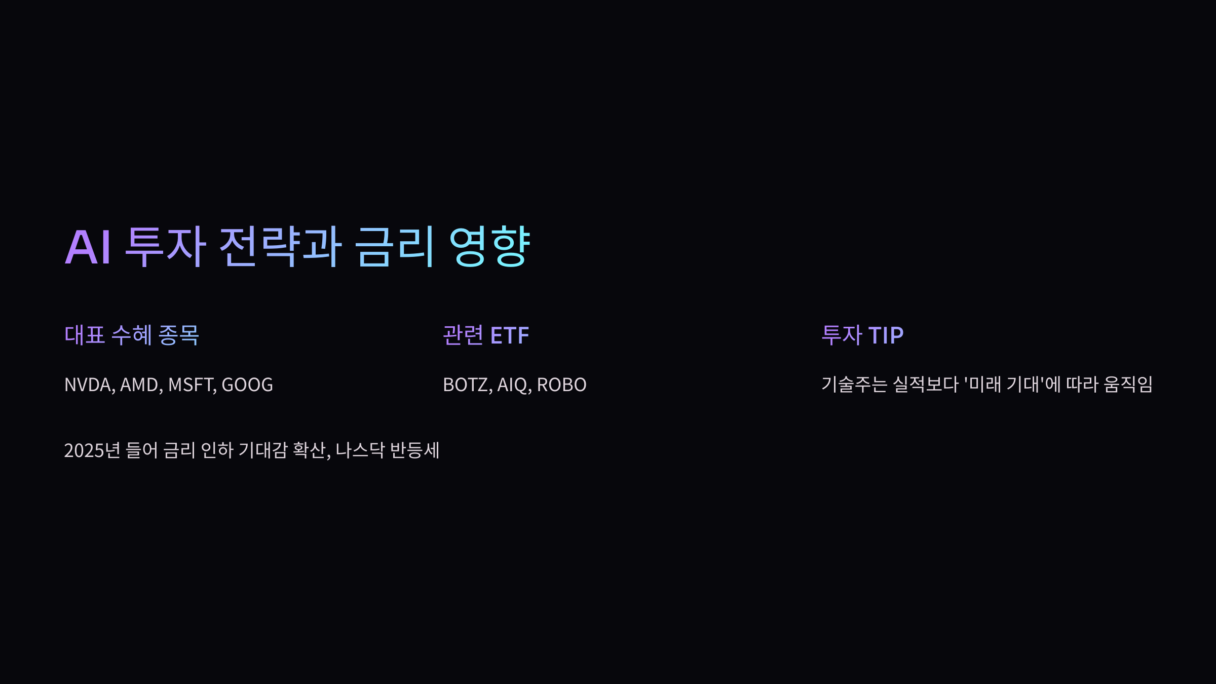 - 🧠 대표 수혜 종목: NVDA, AMD, MSFT, GOOG