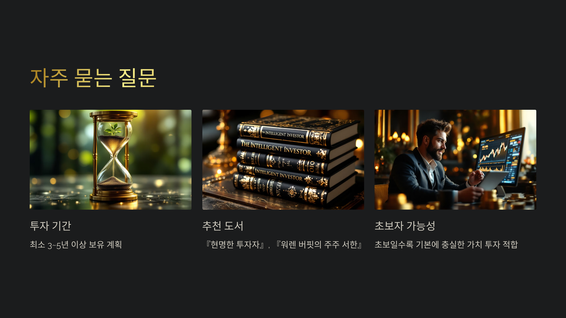 A. 최소 3~5년 이상 보유할 계획을 세우는 것이 바람직합니다. - Q. 워렌 버핏처럼 투자하려면 어떤 책을 읽어야 하나요?