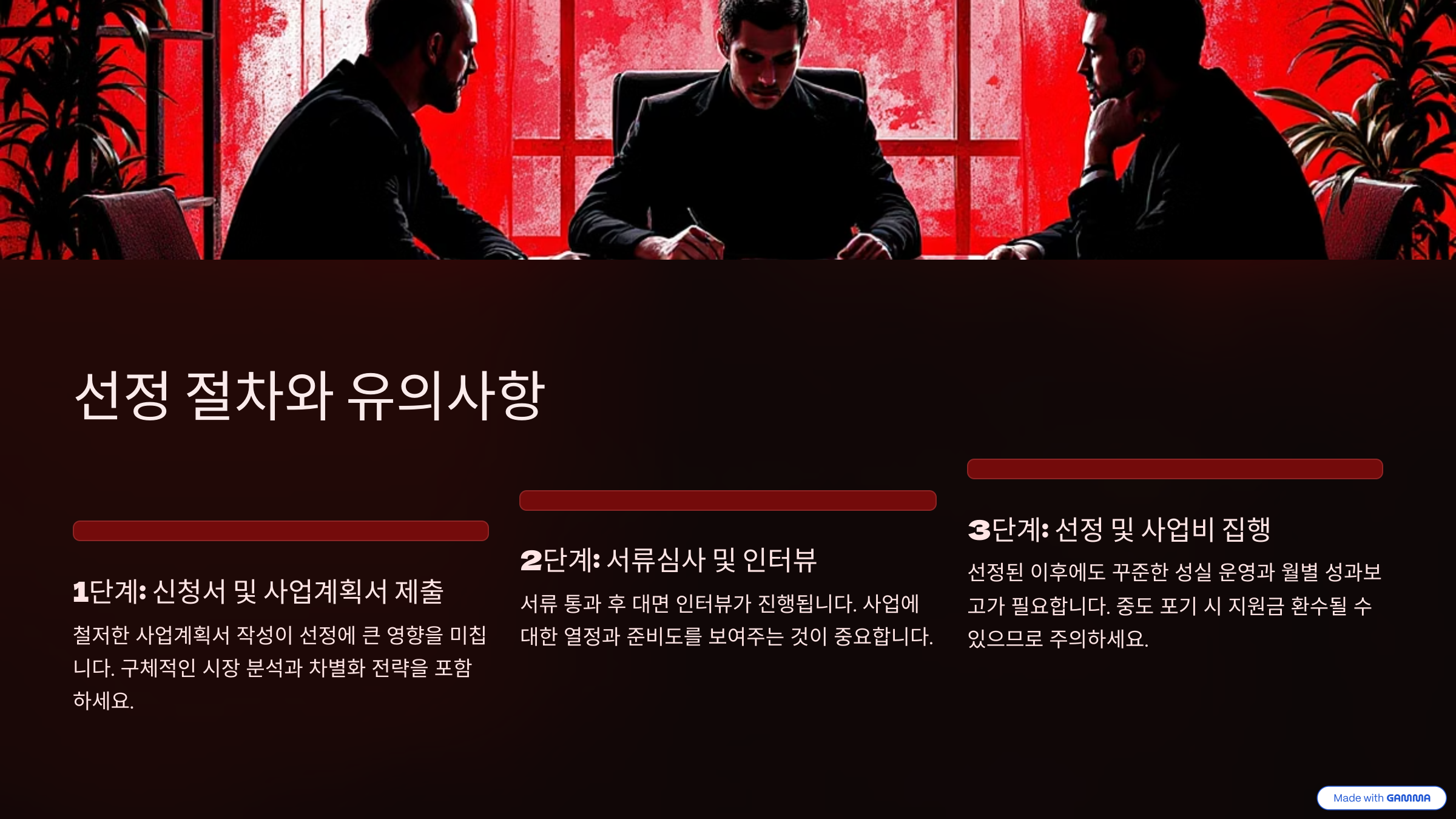 선정된 이후에도 꾸준한 성실 운영과 월별 성과보고가 필요합니다. 중도 포기 시 지원금 환수될 수 있으므로 주의하세요.