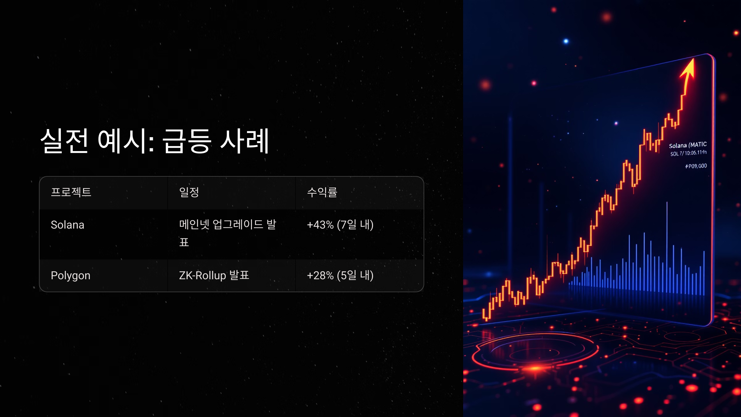 | Solana | 메인넷 업그레이드 발표 | +43% (7일 내) |