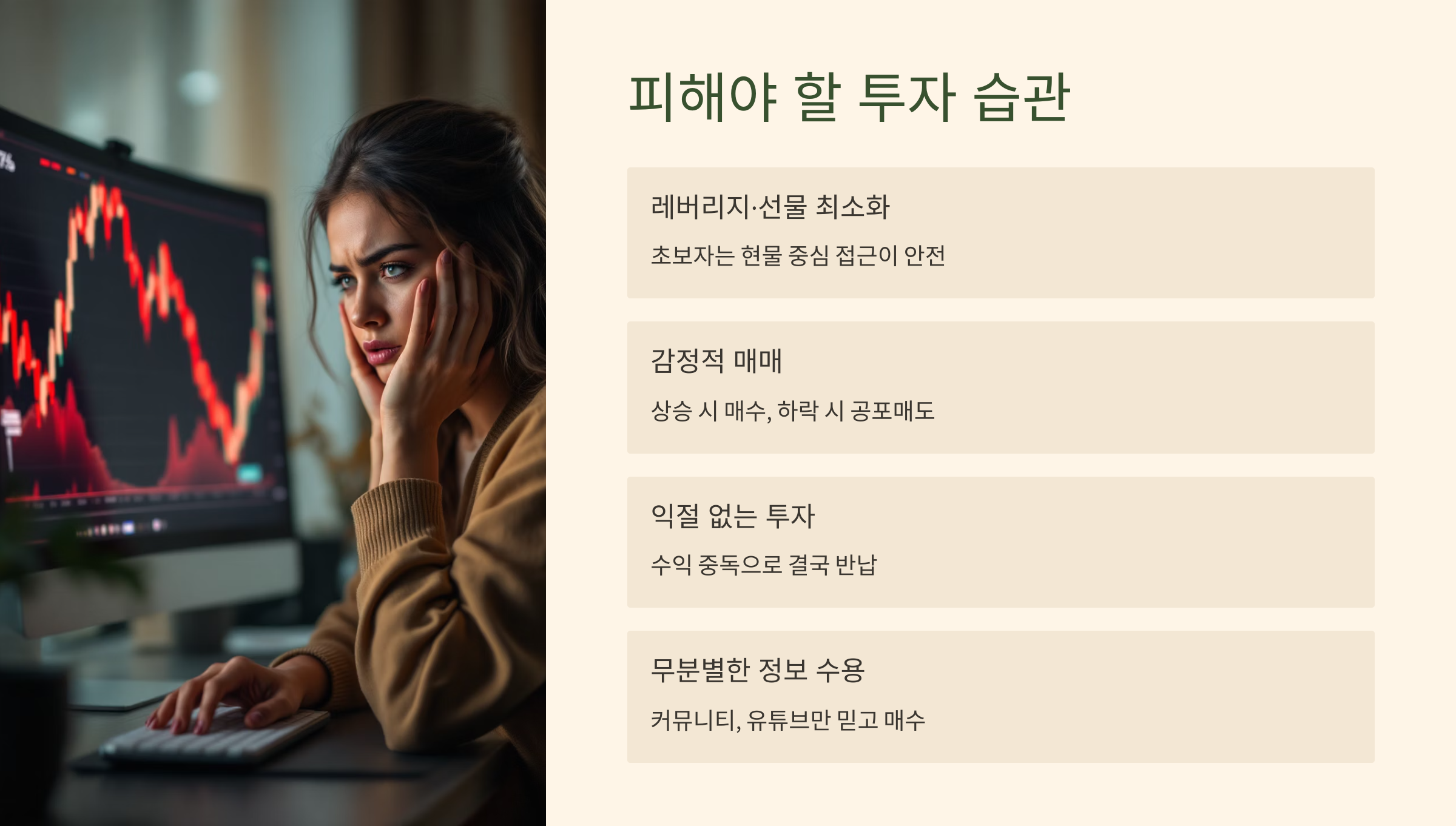 - 5. 레버리지·선물은 최소화: 초보자는 현물 중심 접근이 안전