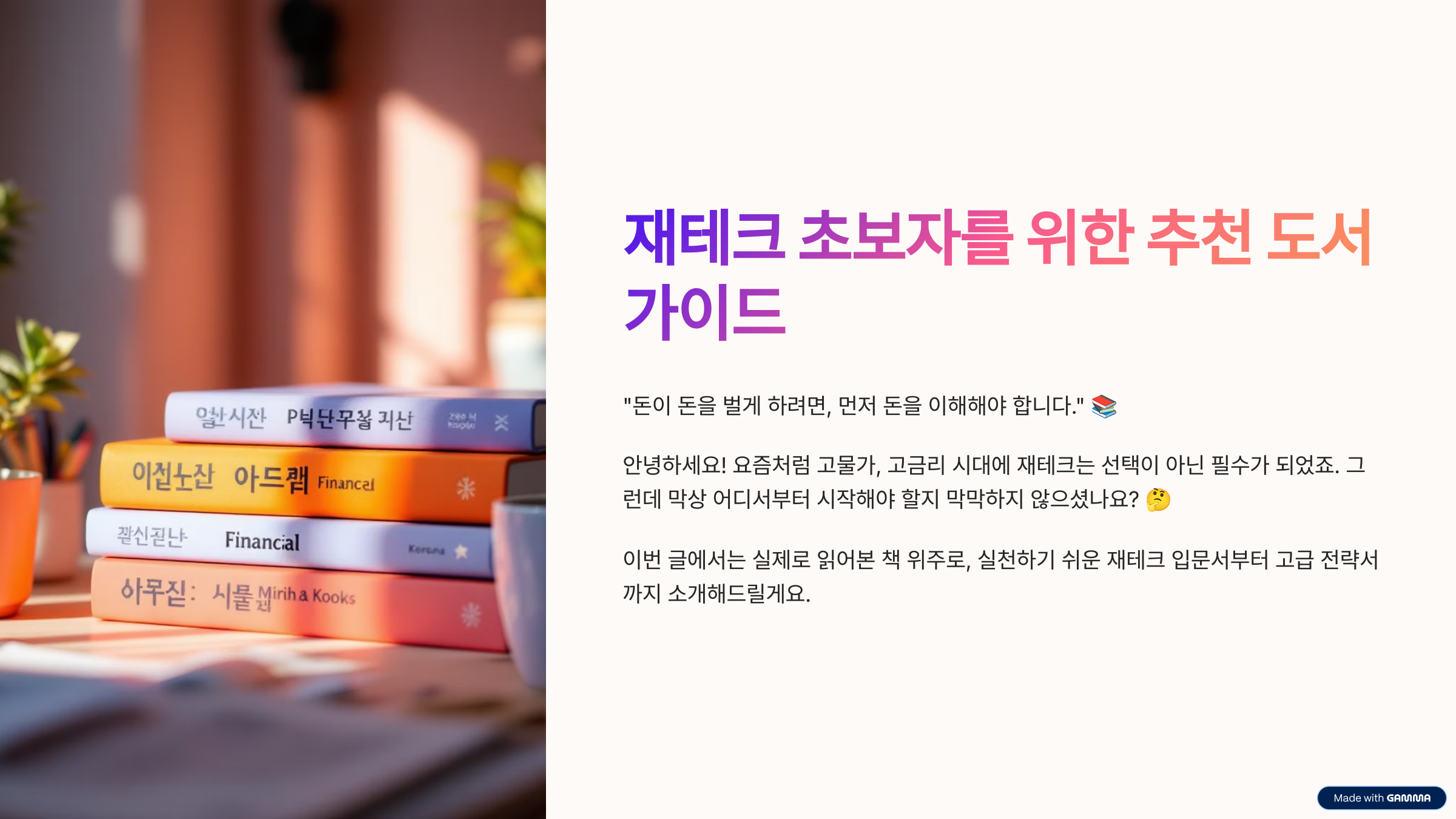 오늘 소개해드린 책들 중 하나만이라도 선택해 읽어보세요. 읽는 순간부터 여러분의 돈과 인생을 바라보는 눈이 달라질 거예요. ✨