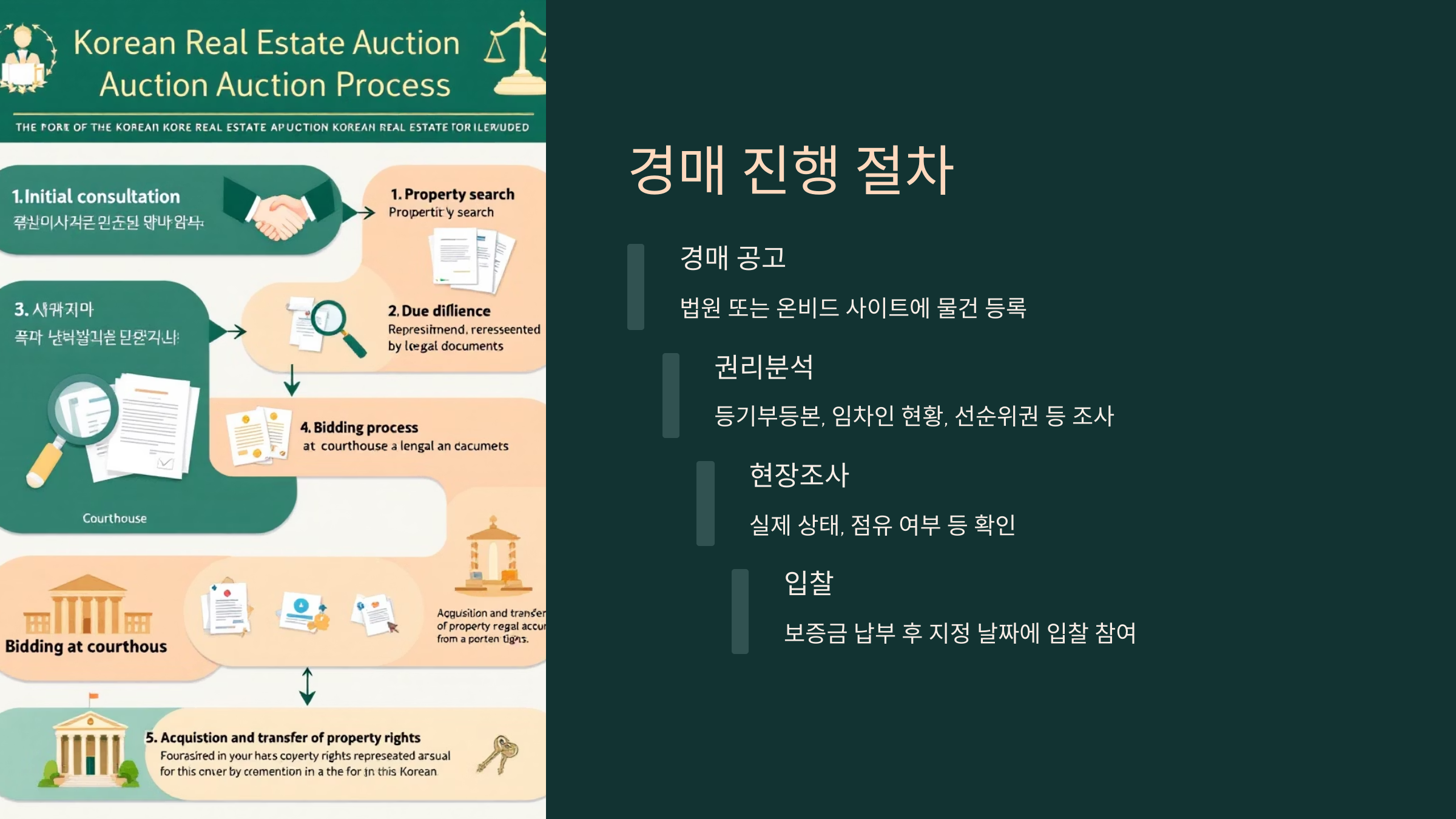 | 5. 낙찰 및 매각허가 | 가장 높은 금액 제시자가 낙찰자 확정 |