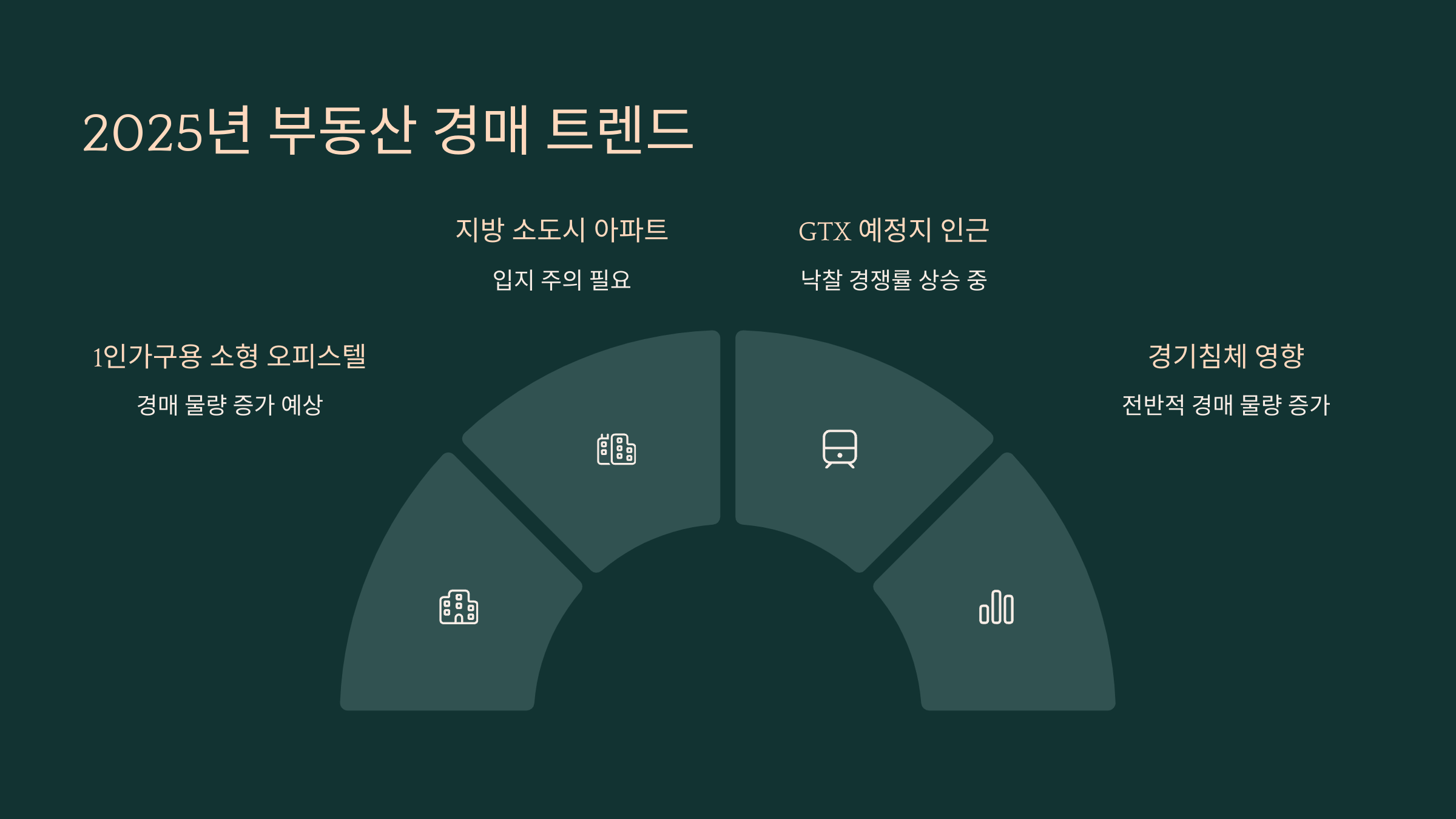 2025년은 경기침체와 금리 고정기 진입으로 경매 물량이 증가하는 시기입니다. 특히 다음 분야가 주목받고 있습니다: