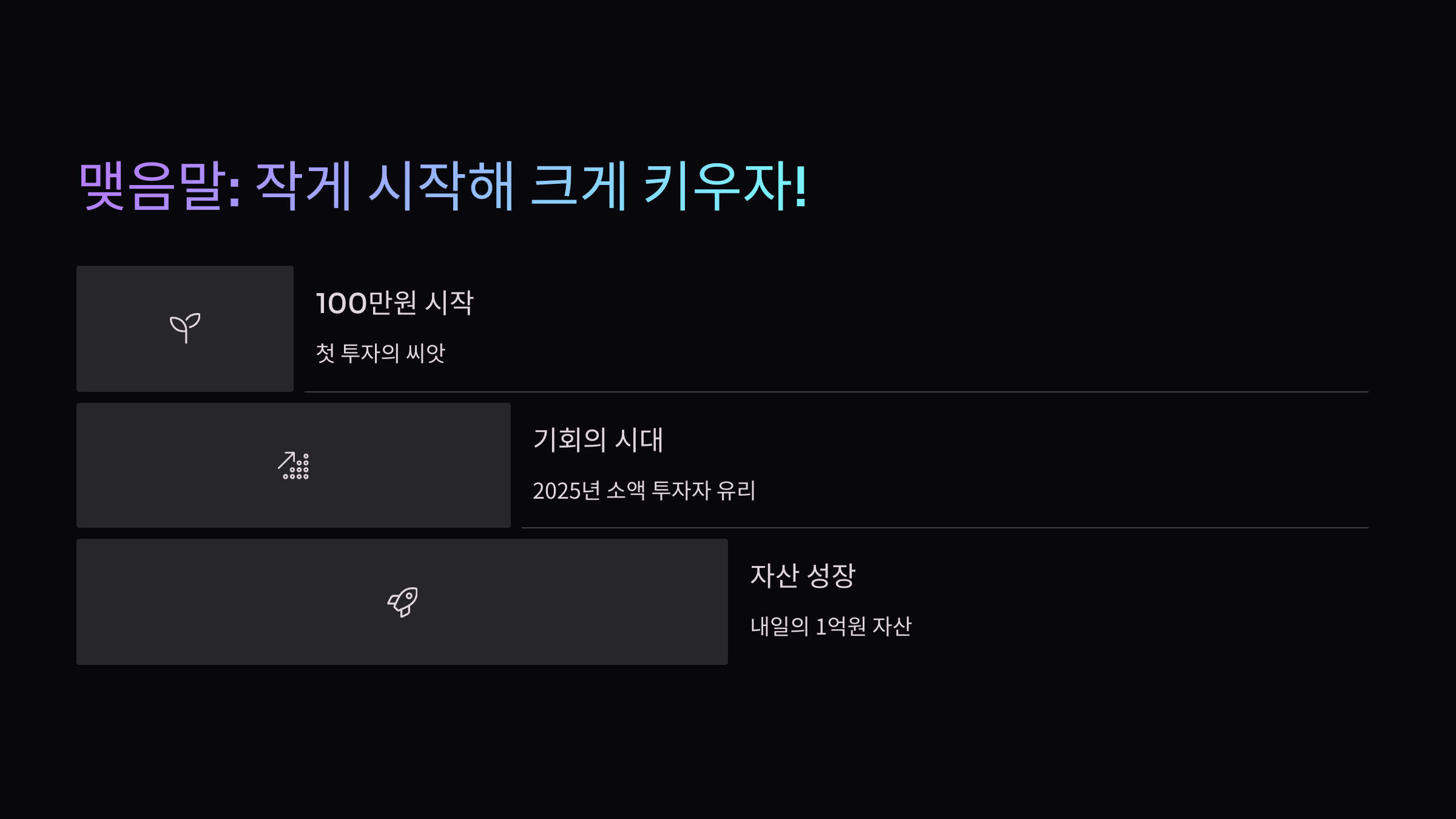 🚀 오늘 100만 원, 내일 1억 원 자산의 씨앗이 됩니다!