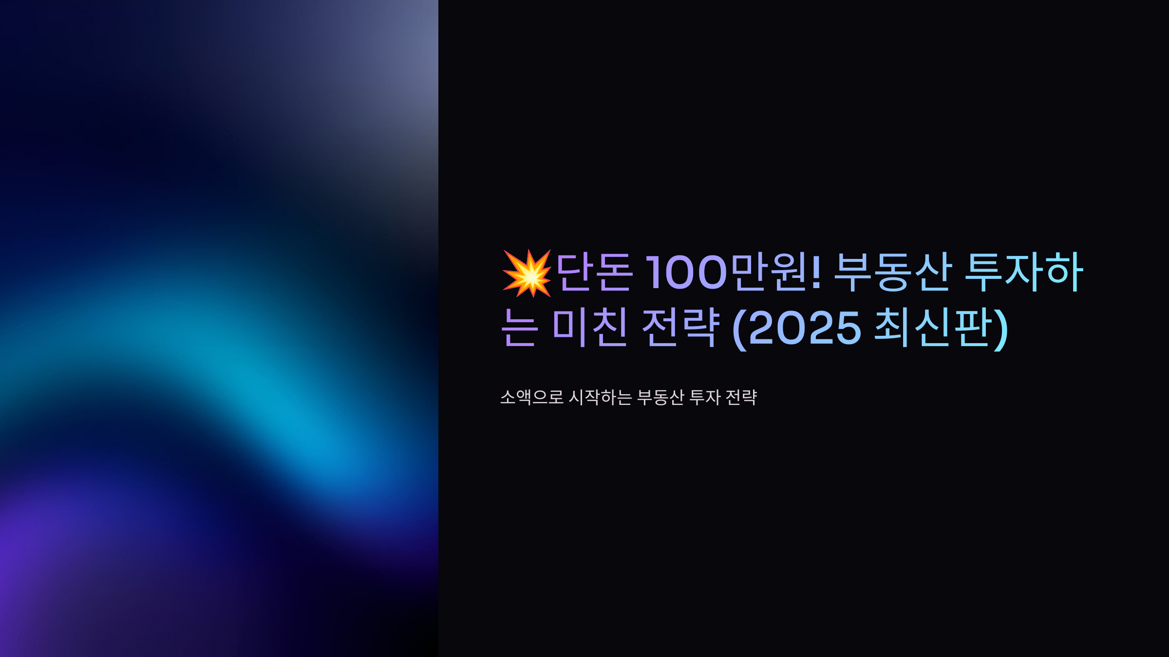 💥단돈 100만 원! 부동산 투자하는 미친 전략 (2025 최신판)