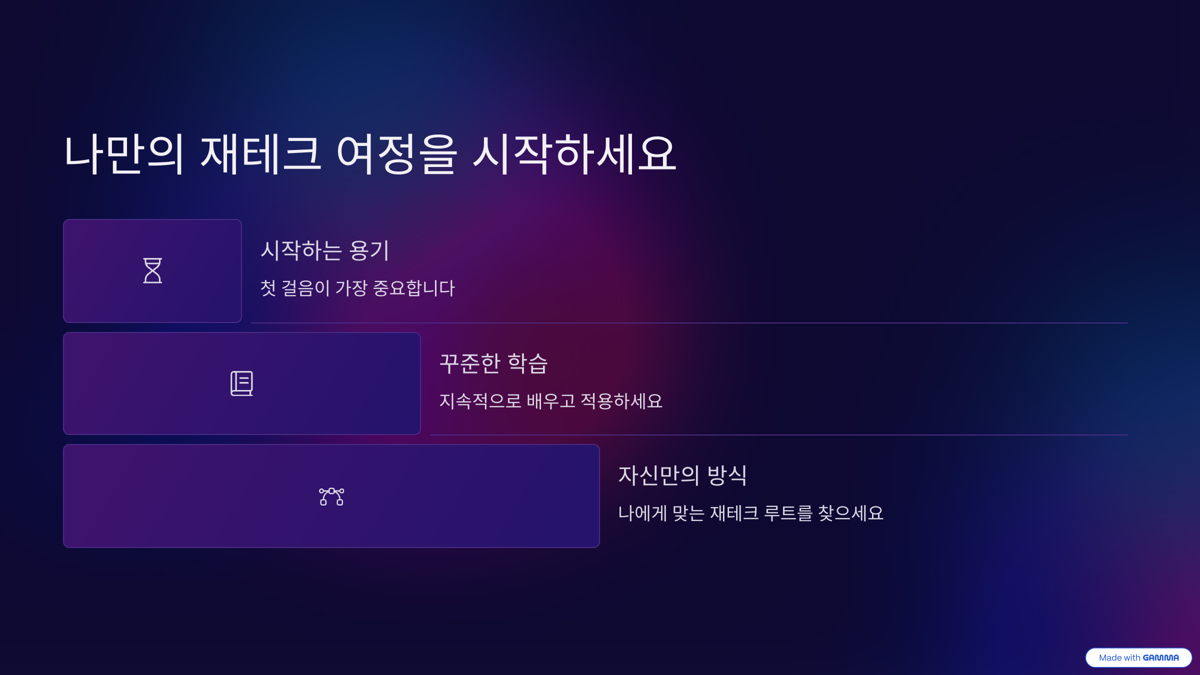 재테크는 결국 자신에게 맞는 방식을 찾는 여정 같아요. 누군가는 주식이 맞고, 누군가는 부동산이 더 편할 수 있죠. 중요한 건 '시작'하는 용기와 꾸준히 배우려는 자세 아닐까요? 여러분도 오늘 이 글을 계기로 자신만의 재테크 루트를 만들어보시길 바랍니다. 혹시 이 글이 도움이 되셨다면, 댓글로 여러분의 재테크 고민이나 질문도 공유해주세요. 우리, 같이 부자 돼요! 💸