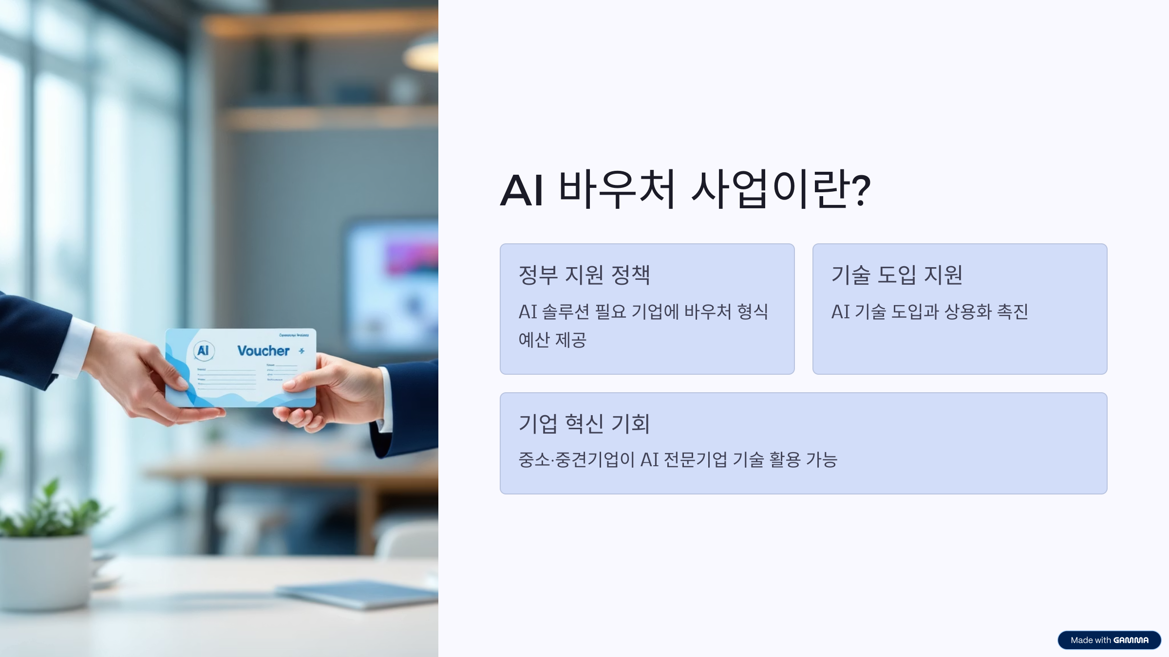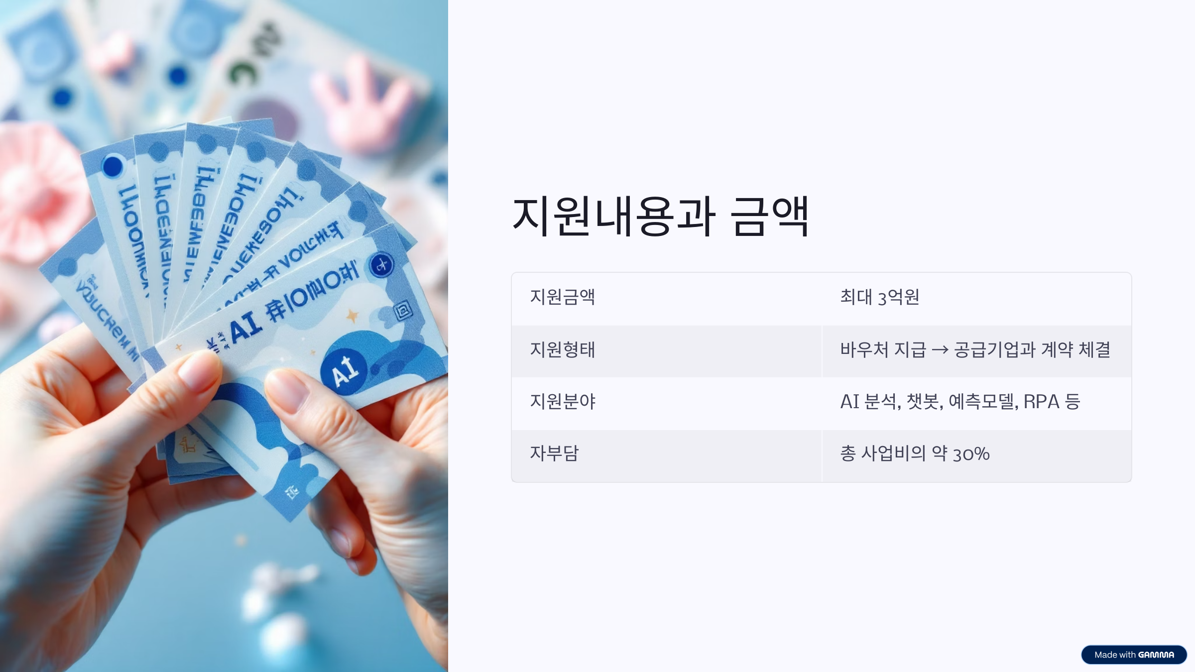 AI 기술이 필요한 기업이라면 주목! 최대 3억원까지 정부가 밀어주는 초특급 바우처 사업, 지금 시작하세요.