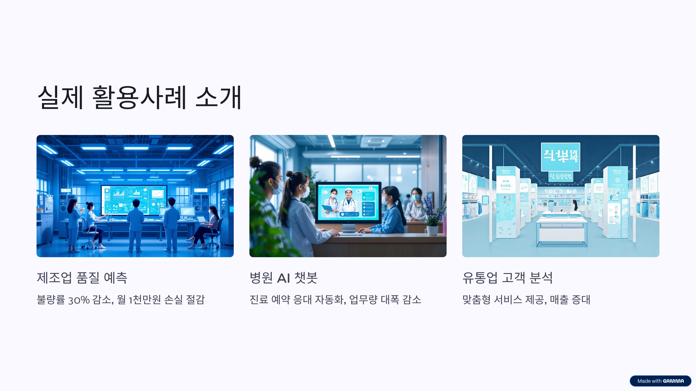 한 제조업체는 AI 바우처를 통해 품질 예측 모델을 도입, 불량률을 30% 이상 감소시키며 월 1천만 원 이상의 손실을 줄였습니다. 또 다른 병원은 AI 챗봇을 도입해 진료 예약 응대를 자동화, 직원 업무량을 크게 줄였습니다.