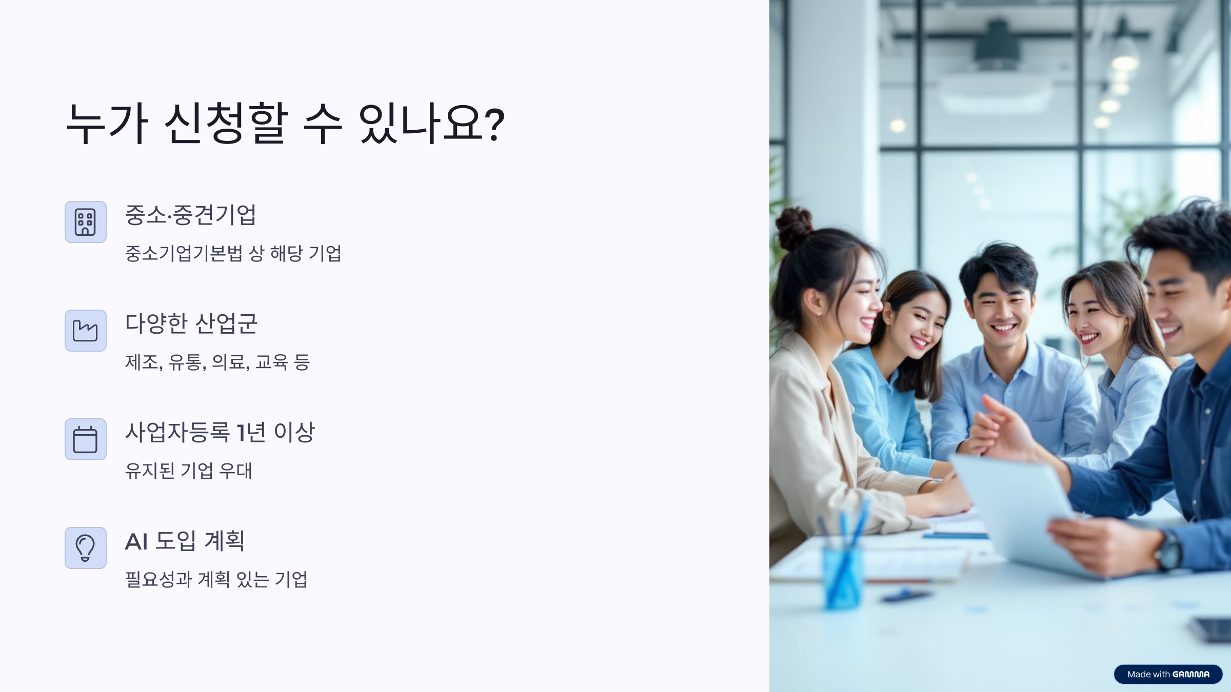 안녕하세요, 디지털 전환을 고민하고 계신 기업 관계자 여러분! 요즘 'AI'는 선택이 아닌 필수가 되어가고 있는데요. 하지만 비용과 기술력 때문에 망설이고 계셨다면 이번 기회를 절대 놓치지 마세요.