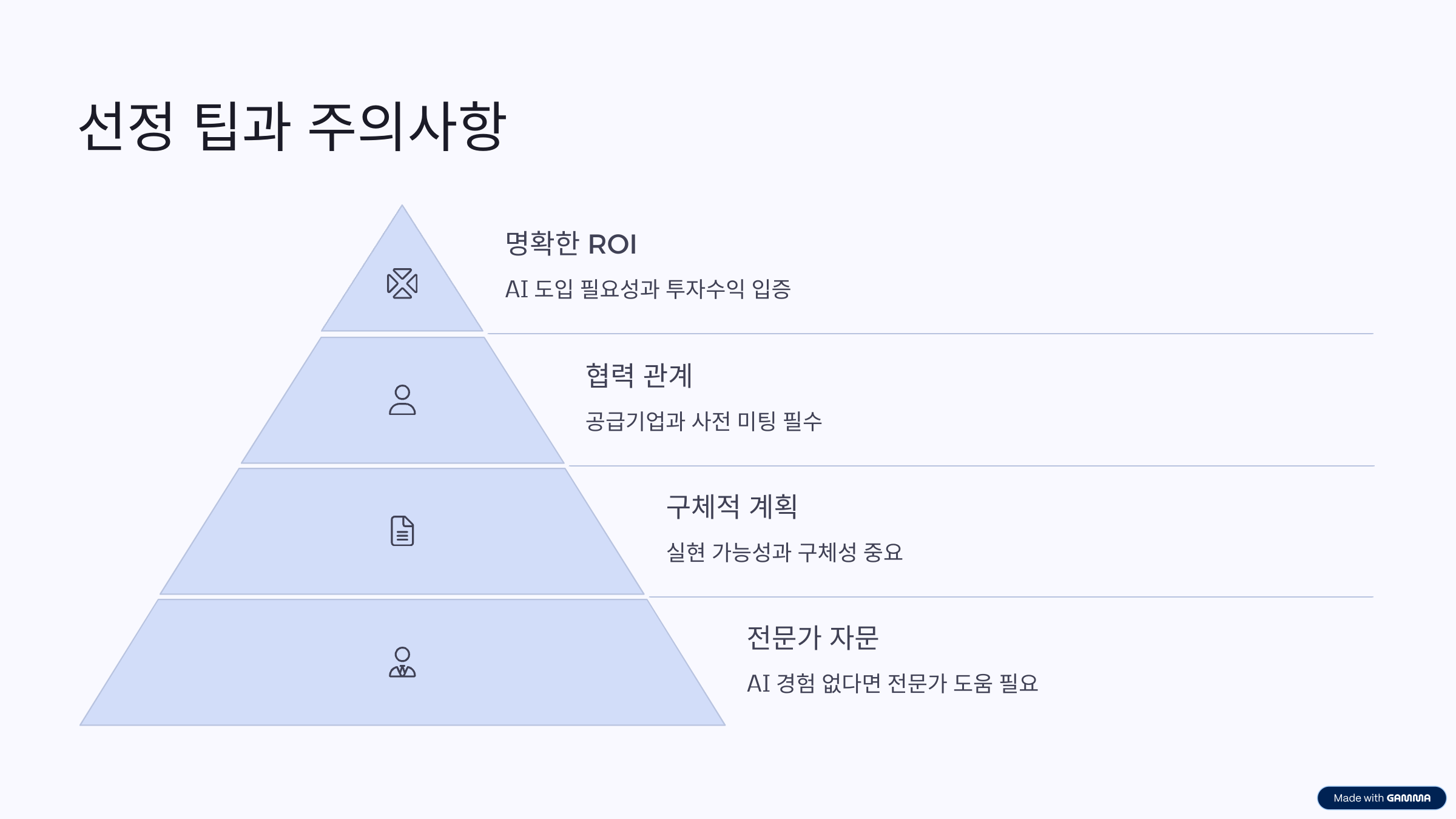 - AI 도입의 명확한 필요성과 ROI를 입증해야 합니다.