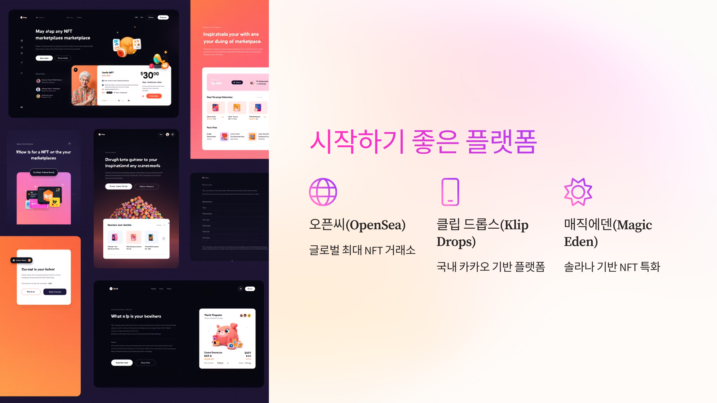 - 오픈씨(OpenSea): 글로벌 최대 NFT 거래소