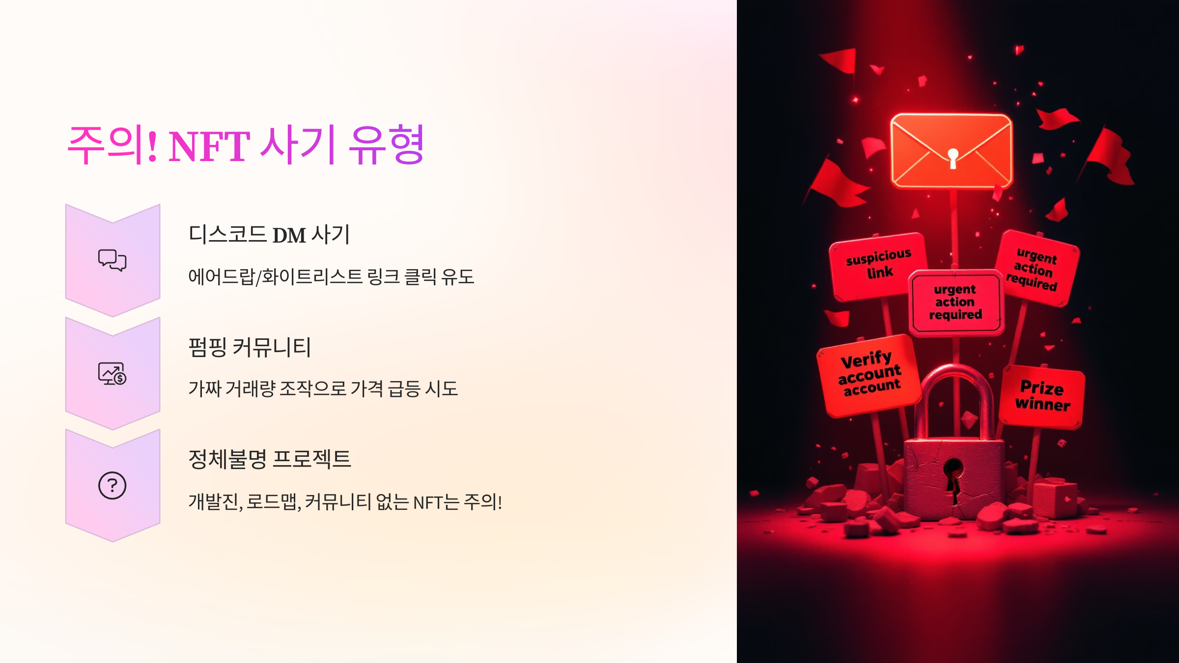 NFT는 단순히 비싼 그림이 아닙니다. 디지털 자산의 미래를 상징하는 중요한 영역입니다. 단, 투기를 조심하고 프로젝트 리서치, 커뮤니티 활동, 플랫폼 신뢰도를 함께 고려하세요.